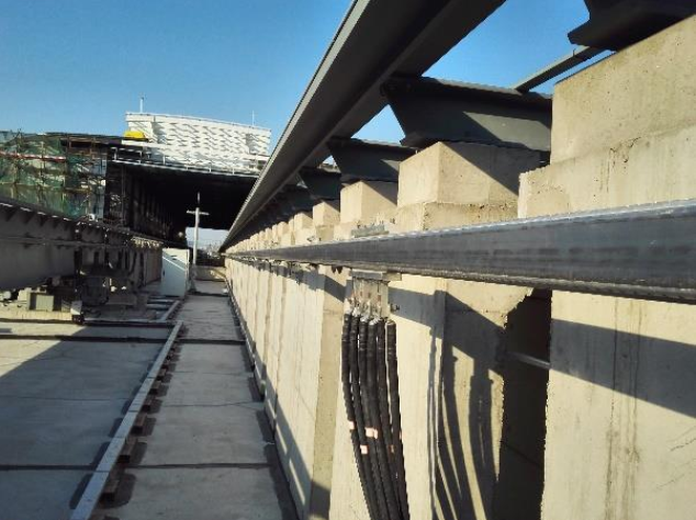 裝置組成: 鋼鋁復(fù)合接觸軌、中間接頭、電纜連接板、中心錨結(jié)、膨脹接頭、分段絕緣器、端部彎頭、過(guò)渡彎頭、絕緣支撐裝置。