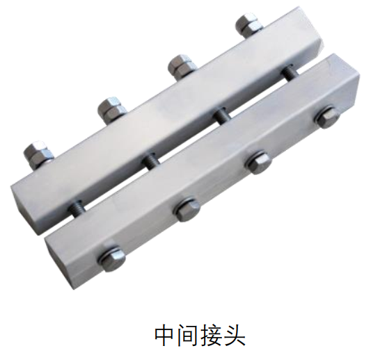 裝置組成: 鋼鋁復合接觸軌、中間接頭、電纜連接板、中心錨結(jié)、端部彎頭、懸吊線夾、絕緣子、調(diào)整底座等。