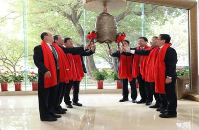 隨后,曾德超、張宗言、何文、李愛敏、胡光濤、李瑞國(中鐵電工黨委書記)、趙戈紅等共同敲響了掛牌寶鐘。